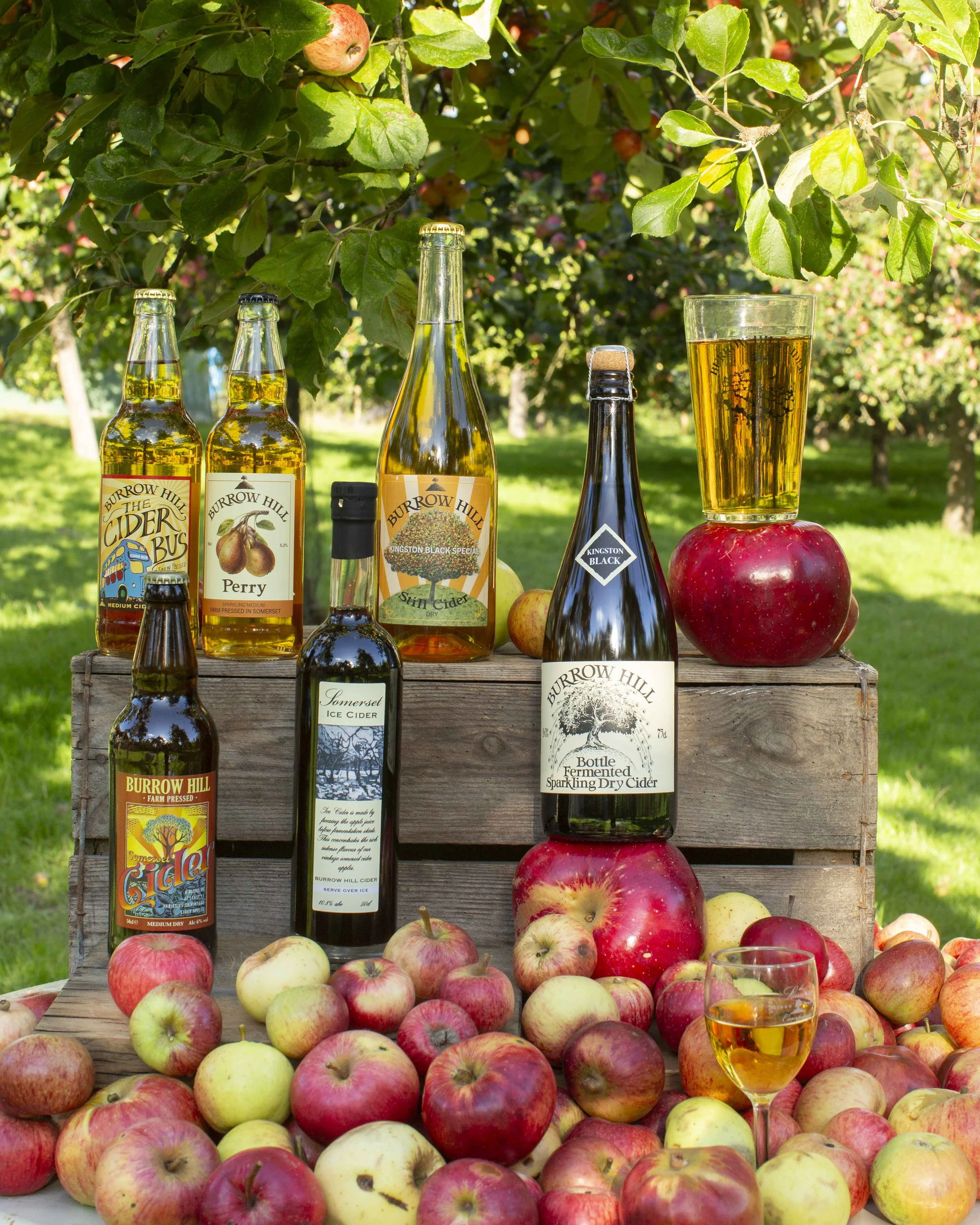 At Burrow Hill, our drinks are made from fruit grown organically in our ancient traditional orchards. We take pride in every step of the process—growing, pressing, fermenting, distilling, maturing, and bottling. In addition to cider and apple brandy, we produce Eau De Vie, Somerset Pomona, Kingston Black Aperitif, Perry, and a variety of fruit spirits.